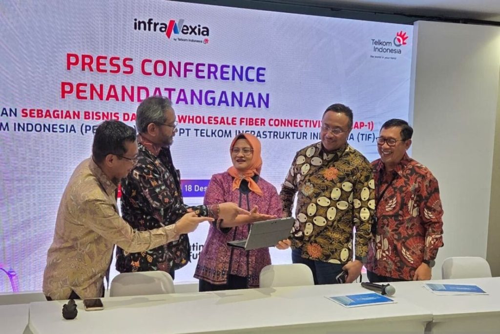 JAKARTA — PT Telkom Indonesia (Persero) Tbk (TLKM) resmi melepas bisnis dan aset Wholesale Fiber Connectivity tahap pertama kepada PT Telkom Infrastruktur Indonesia (TIF) atau InfraNexia. Aksi korporasi ini ditandai dengan penandatanganan akta pemisahan di The Telkom Hub, Jakarta, Kamis (18/12/2025).